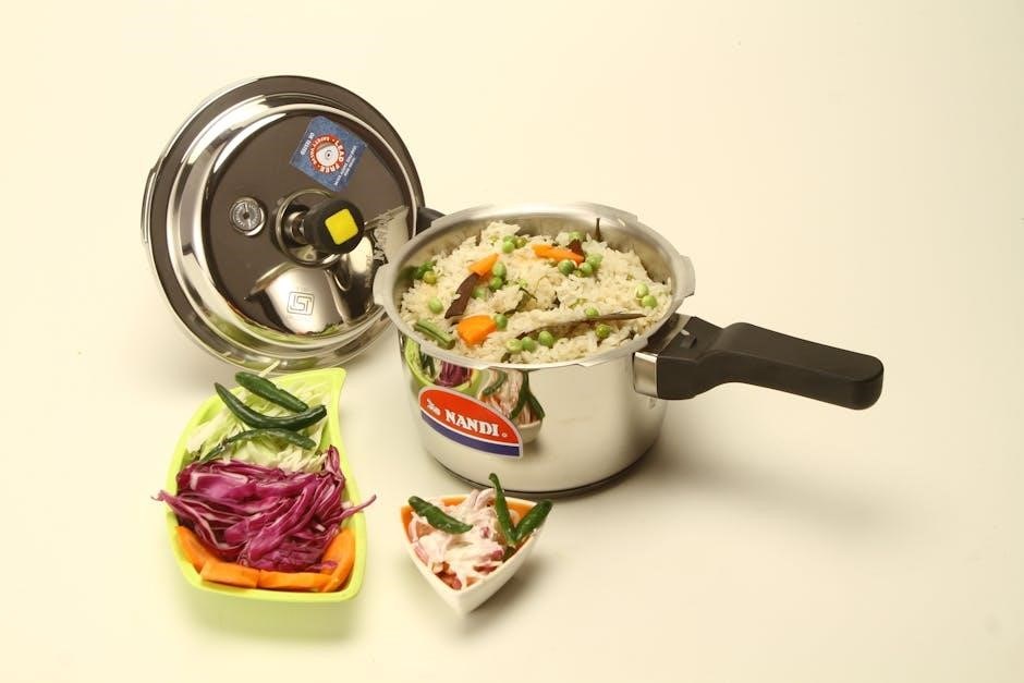 The instruction manual guides users through adding ingredients, selecting time/pressure, and sealing the cooker for safe, efficient operation – a straightforward process!